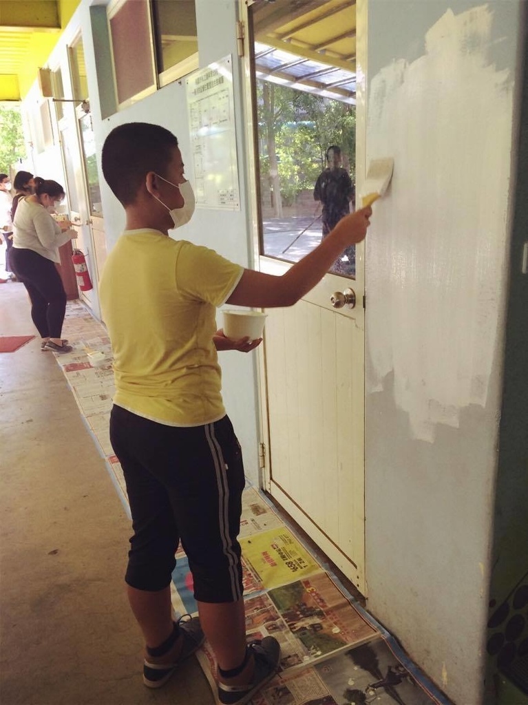 由志願粉刷的大人帶著小朋友、畫家們一同為桃園市大園區 睦祥育幼院的院童們畫出美麗新家園